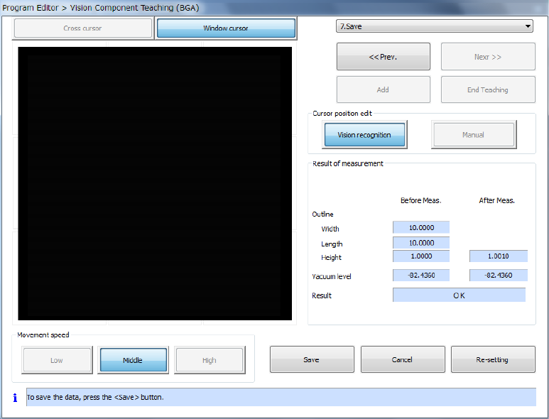 a) Press the <Save> button to save the component vision data. After the system saves the