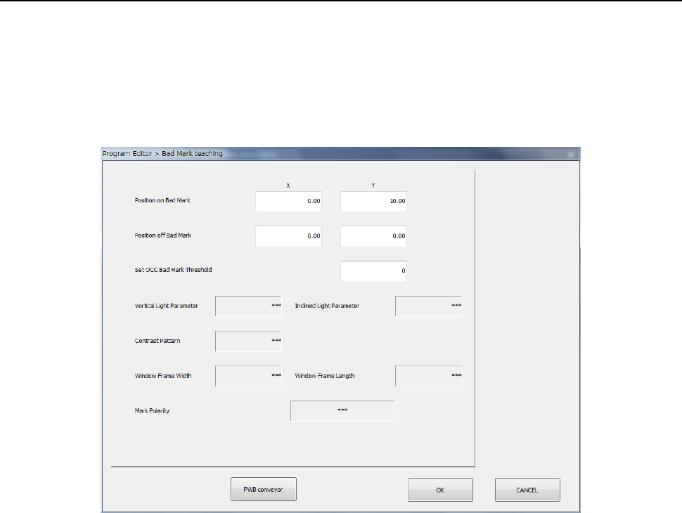 When you select the [Bad mark teaching] command, the following dialog box appears on the