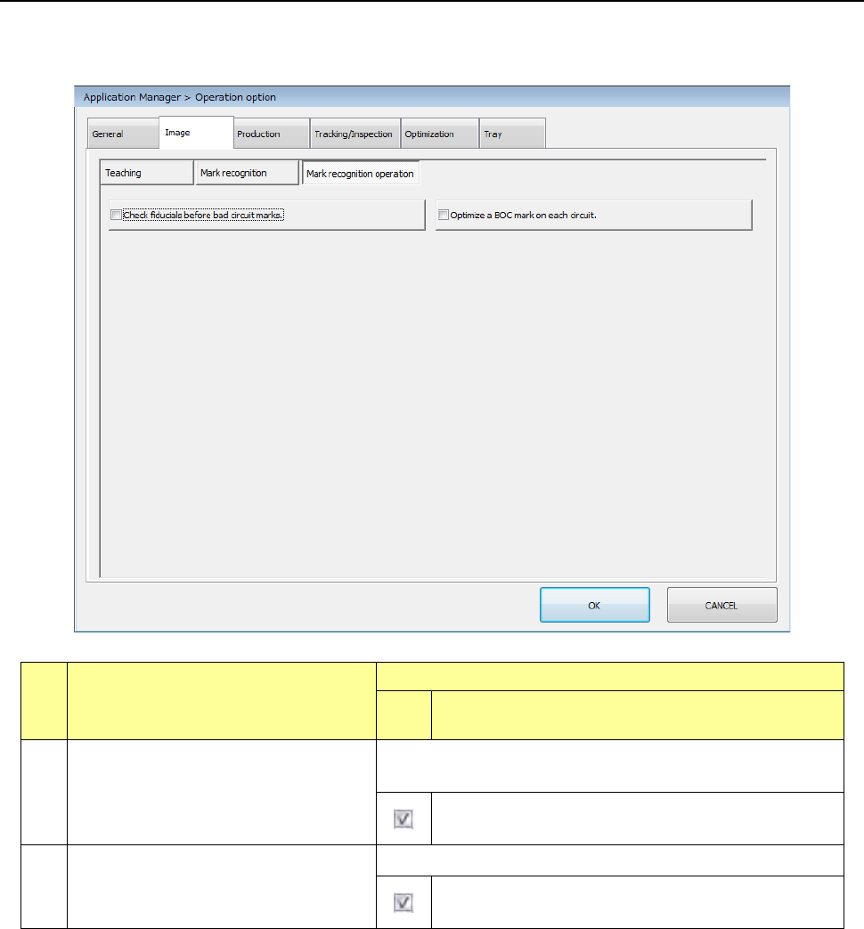 When you press the <Mark recognition> button, the “mark recognizing operation option setting
