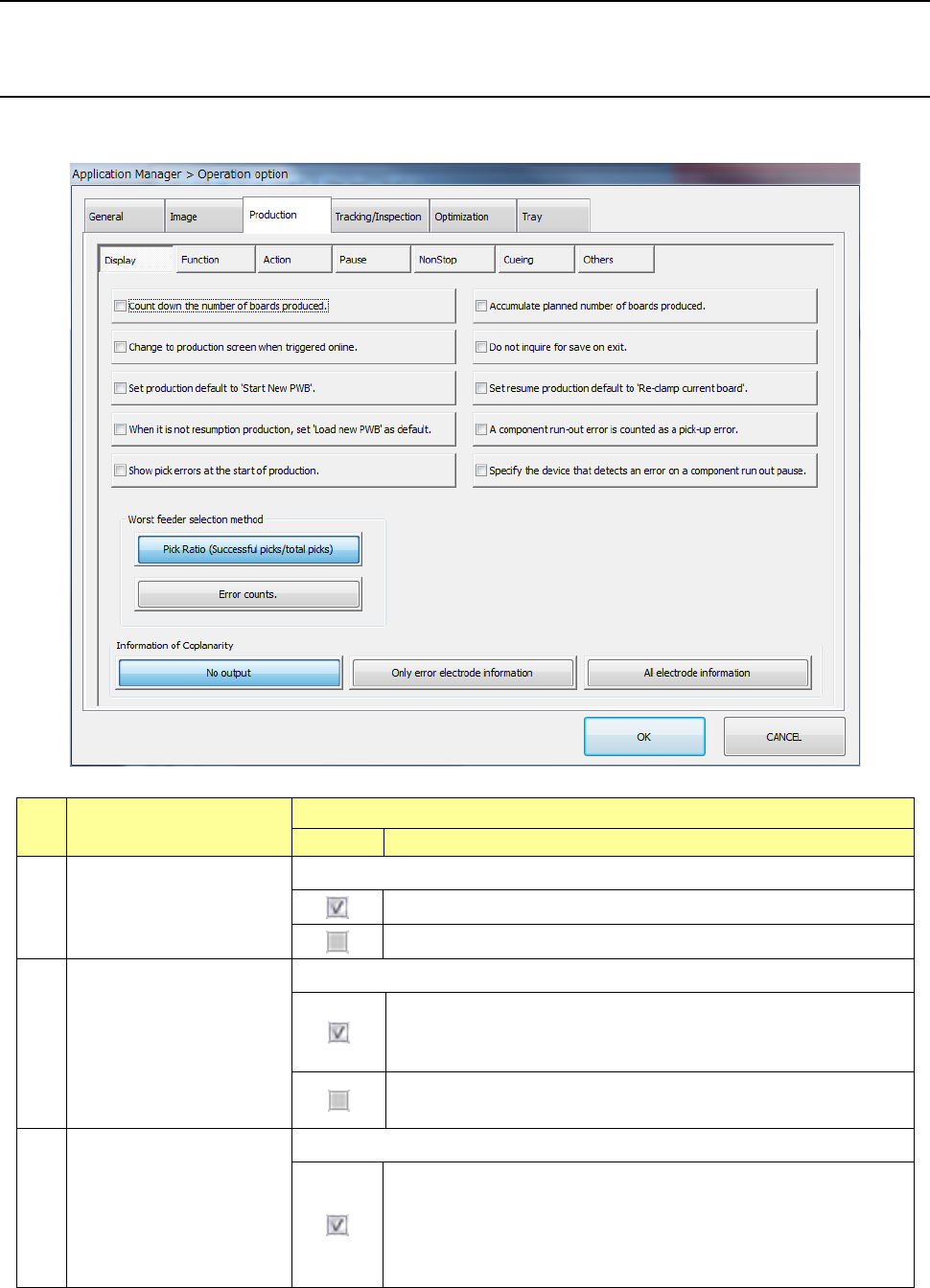 (“Production after PWB carrying-in”/”Production after re-clamp”) can be initially