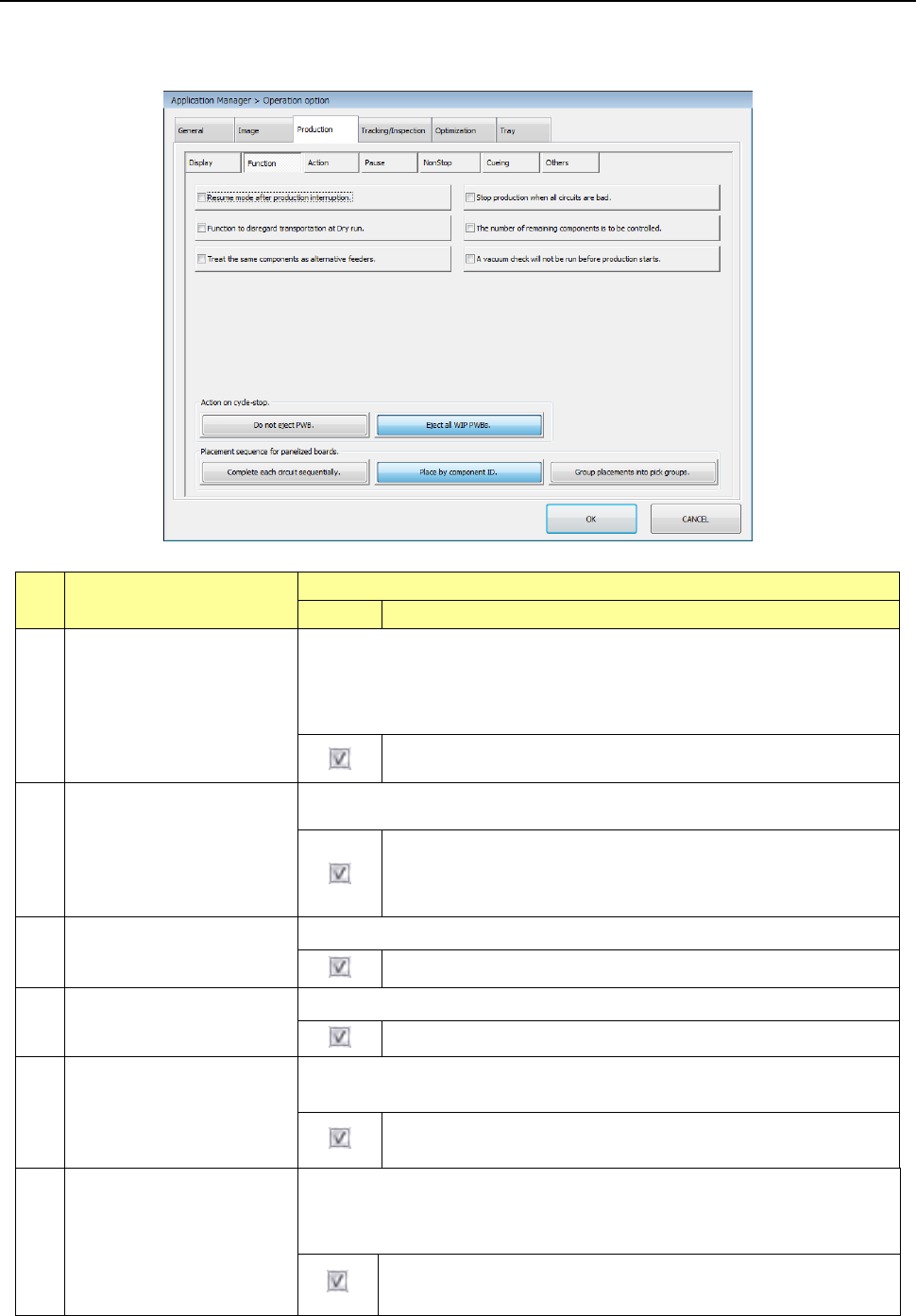 Part 2 D etaile d Descript ion of E ach Functi on Chapter 7 Operation Option 7- 11 No. Menu item Descripti on Status Operatio n and detaile d explanation 11 Method of di splaying the worst fe eder during productio n Spec…