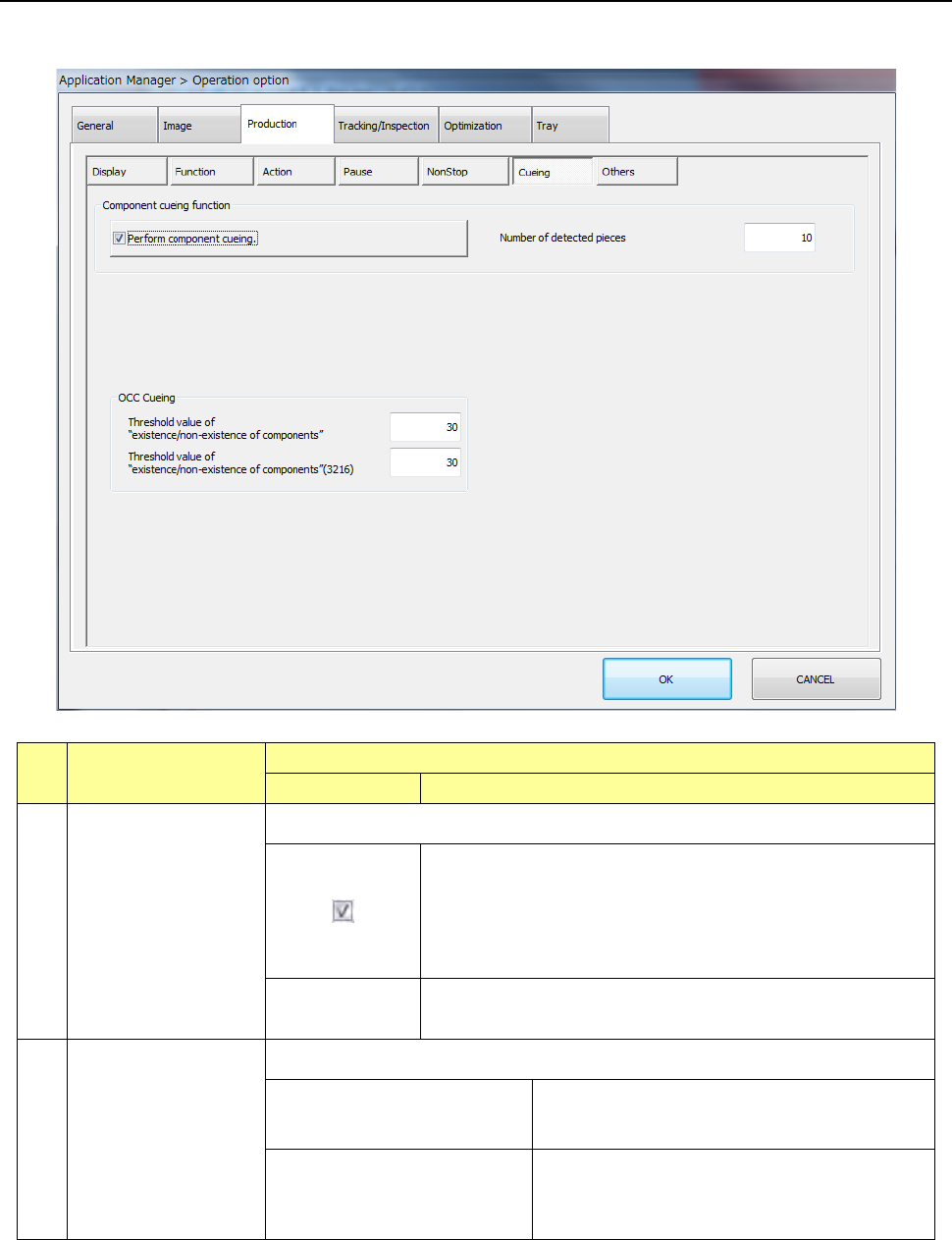 Make settings of the component cueing function.