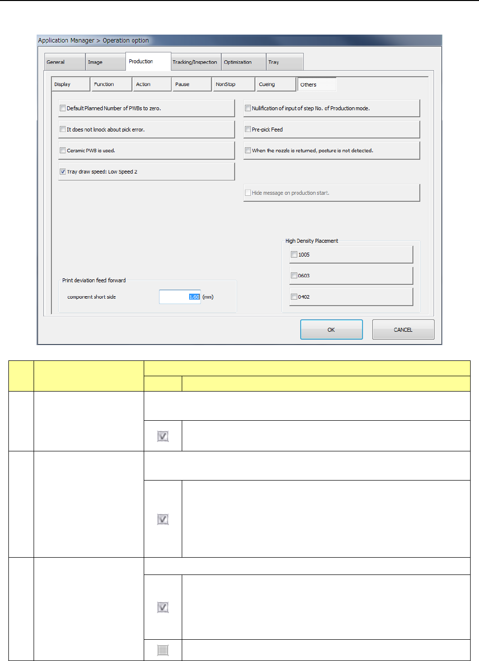 When you press the <Others> button, the “production other option setting screen” appears.