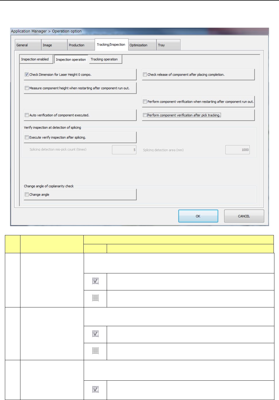 You cannot select this check box when change of the coplanarity inspection