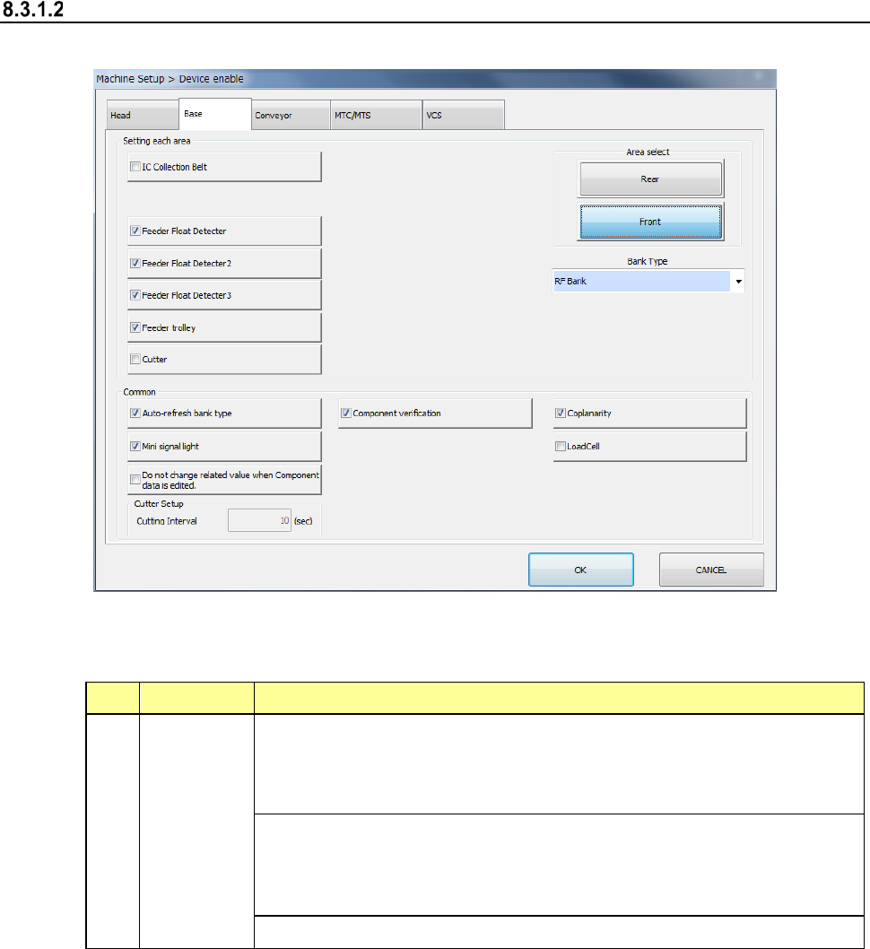 When you click each tab, you can specify each of “Head,” “Base,” “Conveyor,” “MTS” and “VCS.”