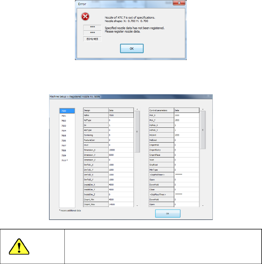 the Nozzle Data Registration screen appears. At this time register the appropriate