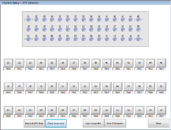 - The <Select All ATC Slots> button permits selecting or releasing all ATCs/all nozzles.
