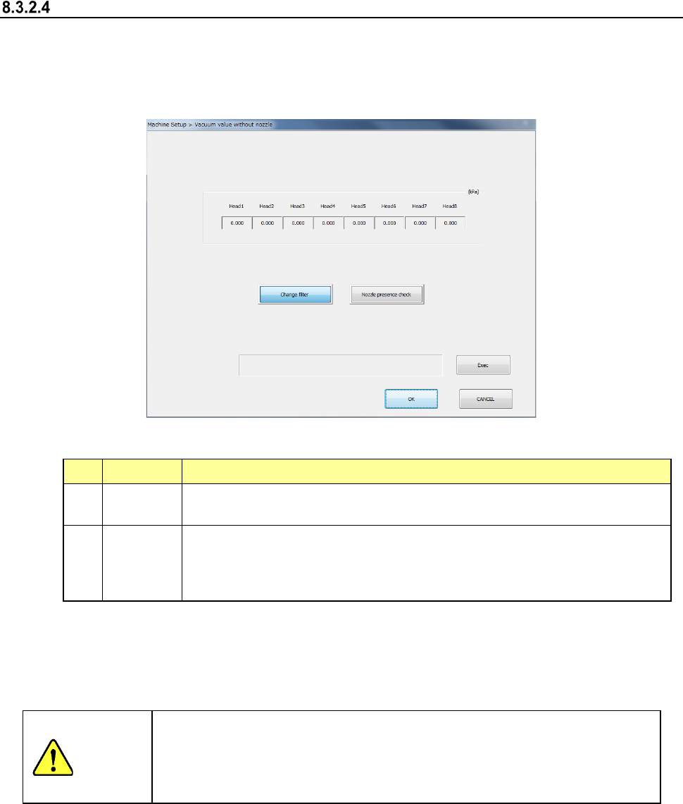 When you select the [Vacuum value without nozzle] command, the following screen appears.