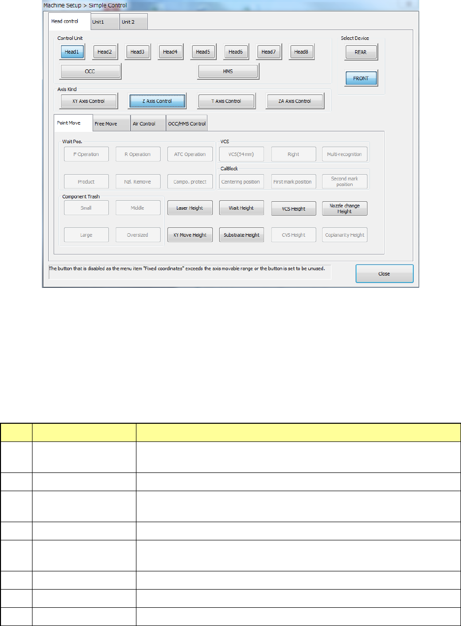 When “Control unit” is specified as the head, you can move the Z-axis.