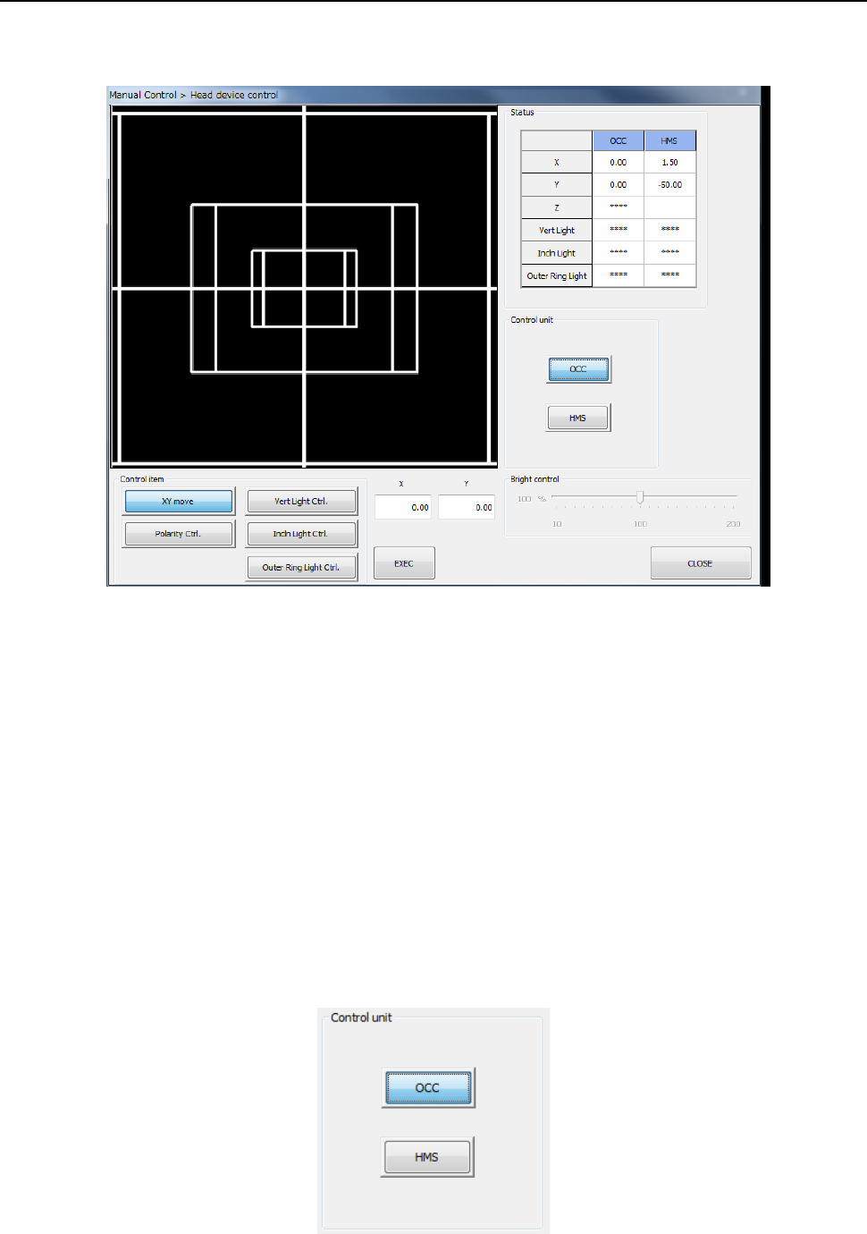 When you select [Head] – [Head device control] in the menu, the head device control screen