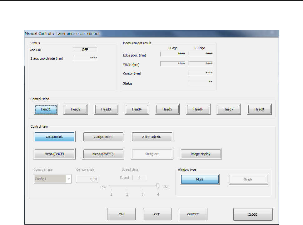 When you select [Head] – [Laser/sensor control] in the menu, the laser/sensor control dialog is