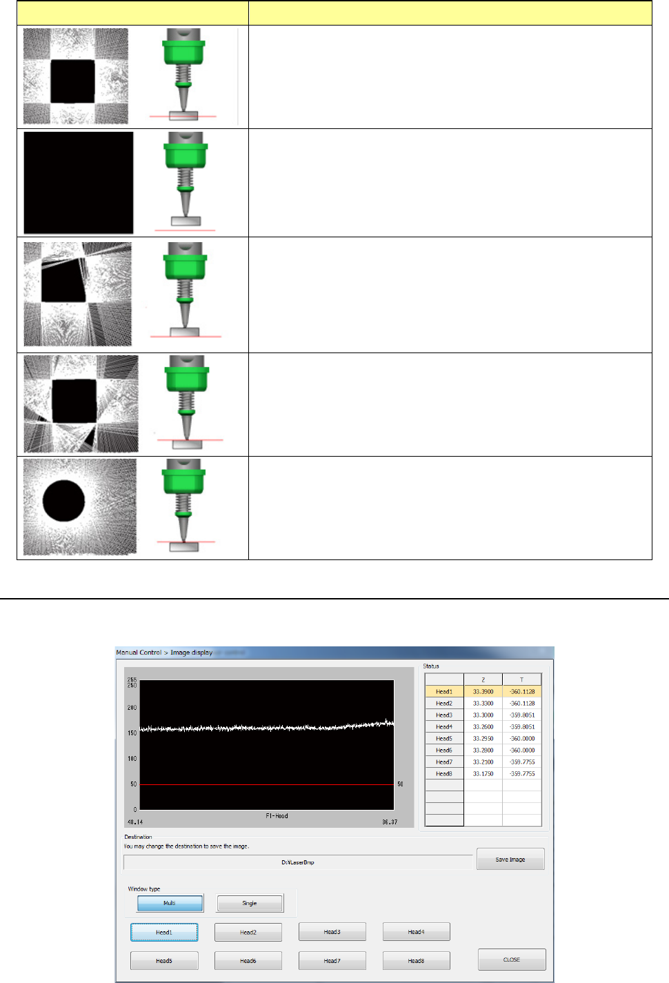 This button displays the image data sensed with the laser sensor for the selected head.