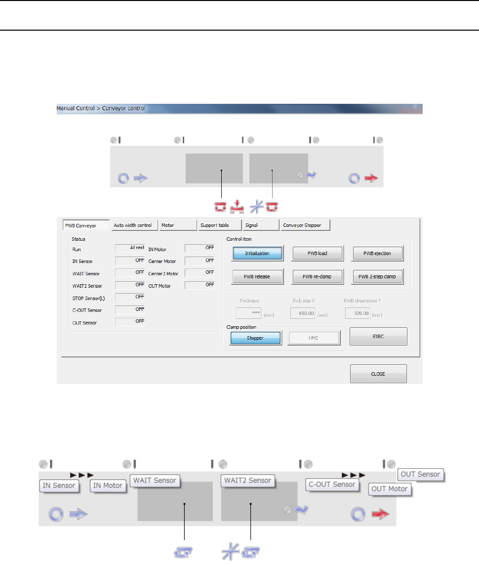 Their details will be described later. Refer to “9.4.1.1 Control tab: PWB conveyor or later.