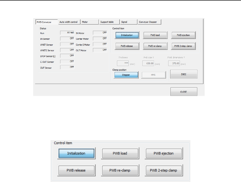 Their details will be described later. Refer to “9.4.1.1 Control tab: PWB conveyor or later.