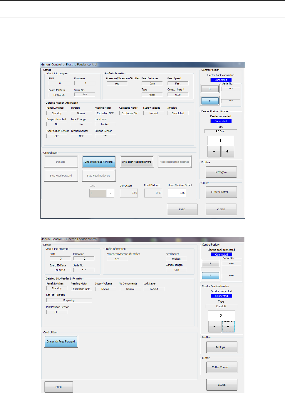 When you select [Feeder] – [Electric feeder control] in the menu, the electric feeder control dialog