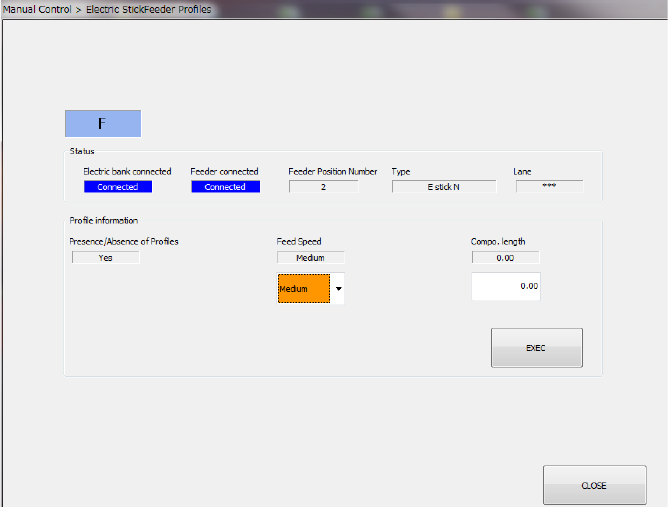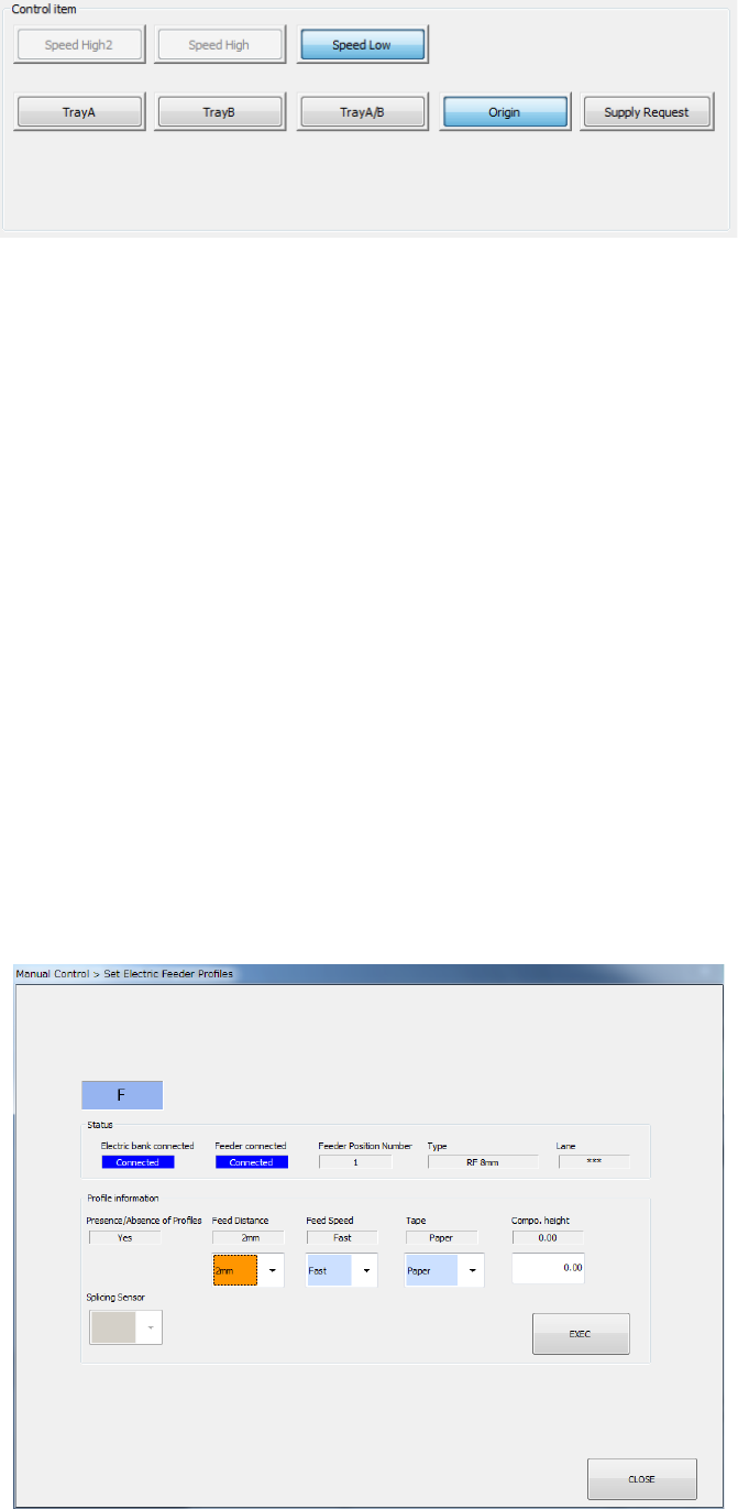 displayed. After selecting a feed speed or tape type by the combo box, press the <EXEC>