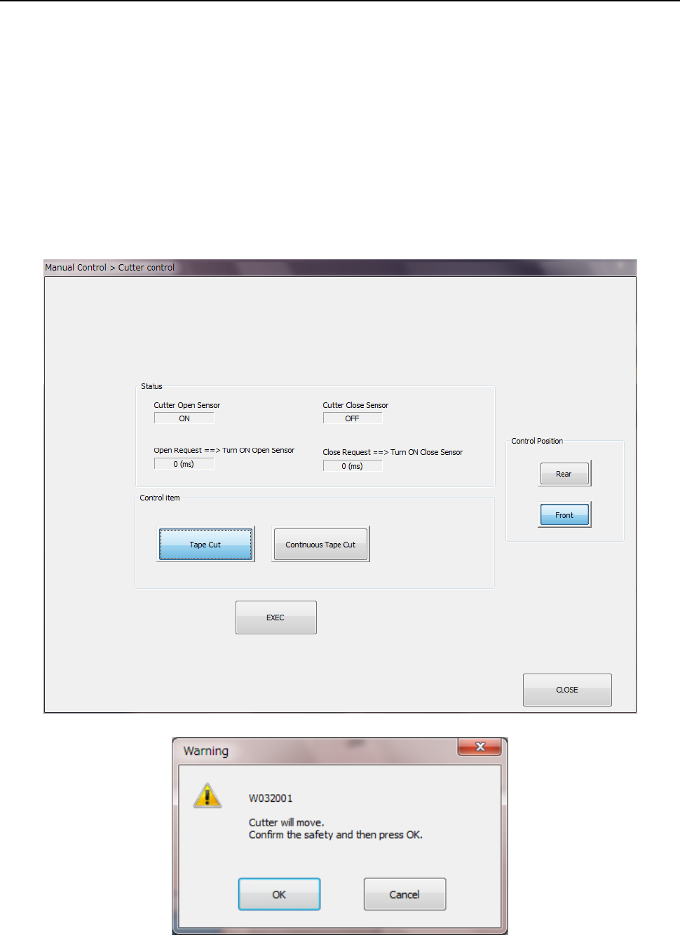 When you select [Other] – [Cutter control] in the menu, the cutter control dialog appears. Select