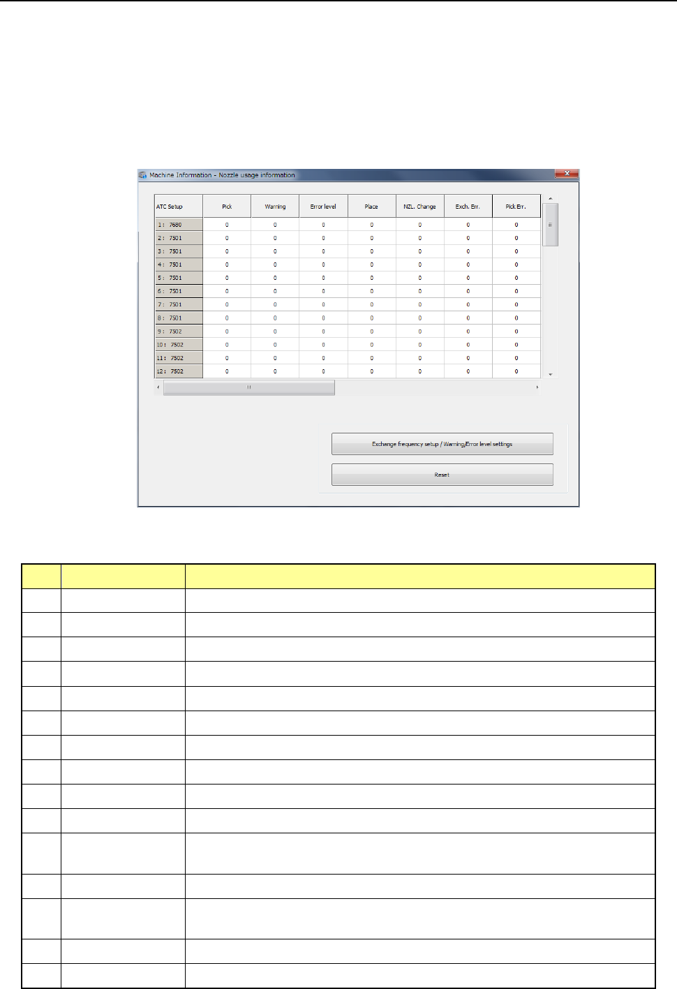 Pa r t 2 Det ai l ed Des c r i pti on o f Ea c h Fu nc ti on Chapter 10 M ach i ne Manage m e nt Infor m ation 10 -9 10.3.4 Oper ation I nfor mati on of e ach nozzl e The op er ation i nf orm ation of each noz zle i s c …