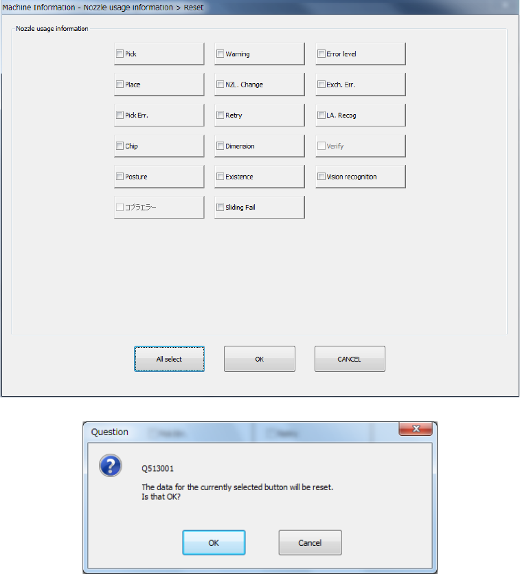 <OK> button, the “Question” dialog box for asking you whether to reset data appears on