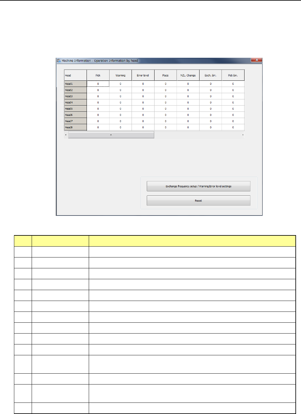 When you select [Machine] – [Operation information by head] in the main menu, the