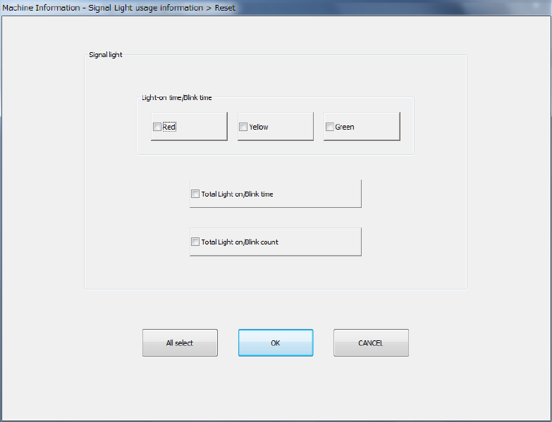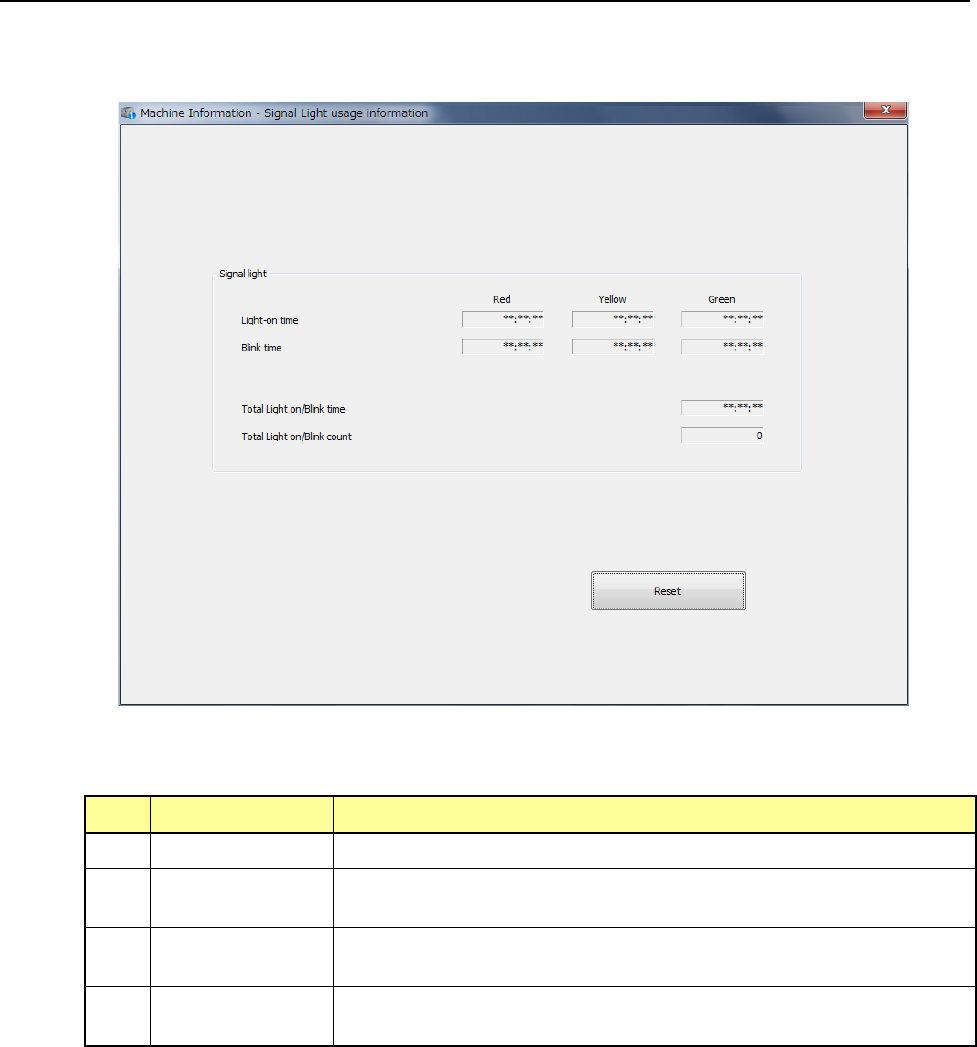 When you select [Machine] – [Signal light usage information] in the main menu, the signal light