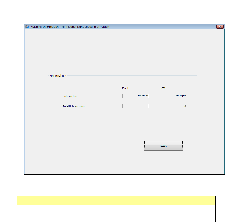 When you select [Machine] – [Mini signal light usage information] in the main menu, the mini