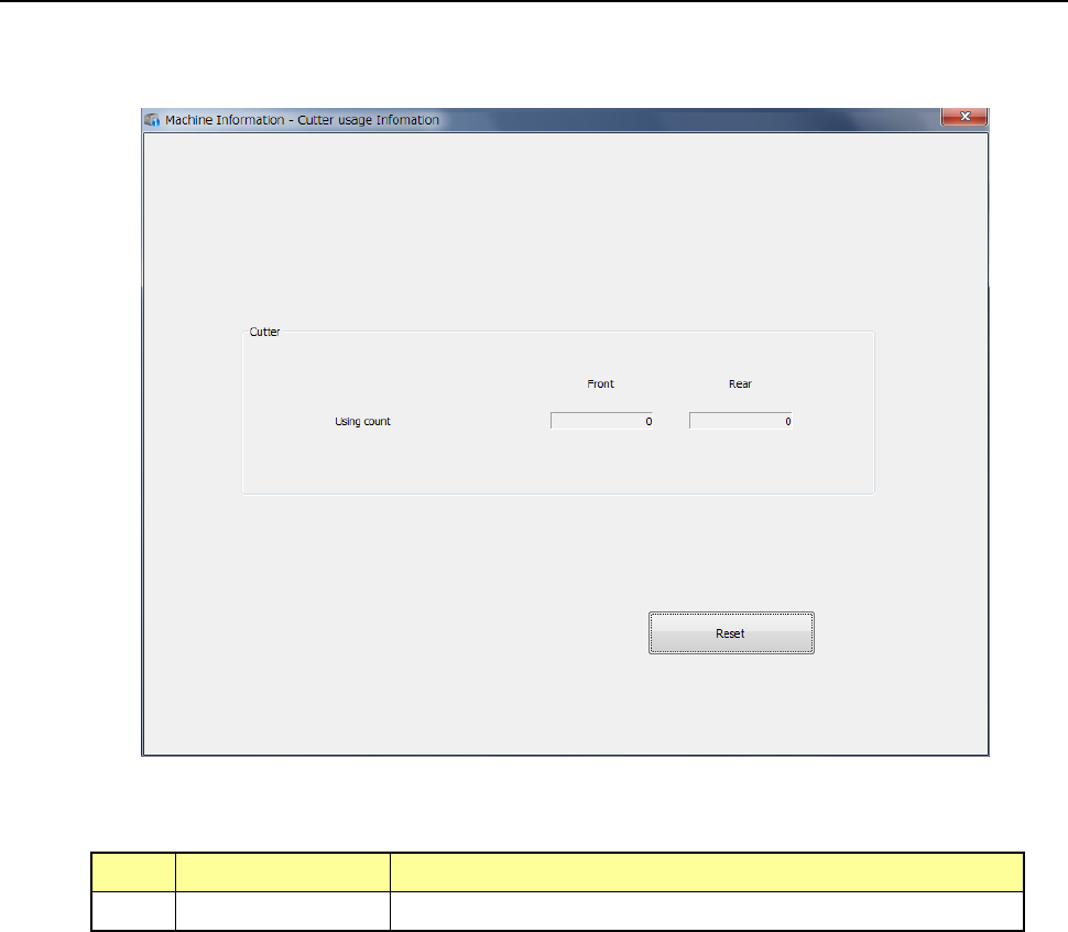 When you select [Machine] – [Cutter usage information] in the main menu, the cutter usage