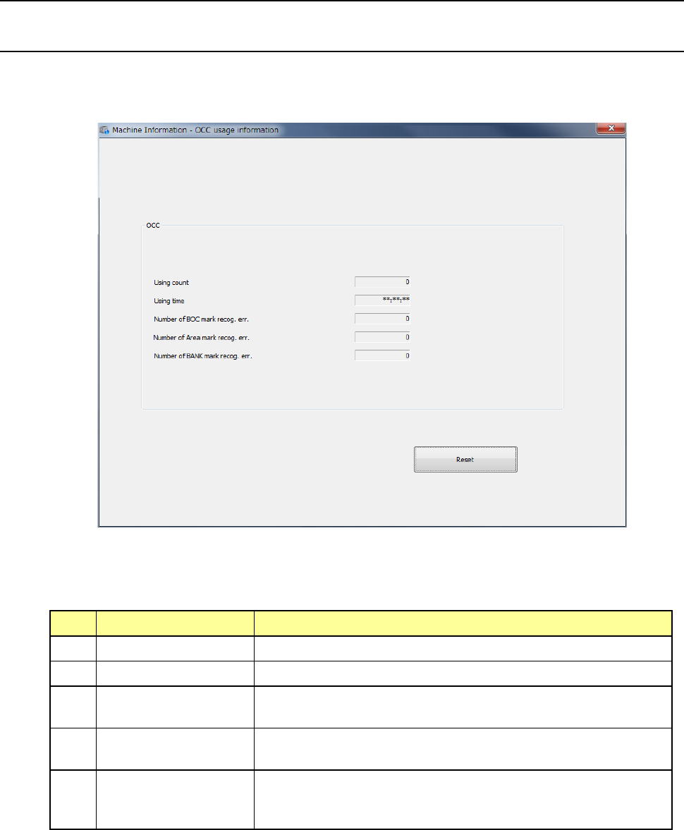 Pa r t 2 Det ai l ed Des c r i pti on o f Ea c h Fu nc ti on Chapter 10 M ach i ne Manage m e nt Infor m ation 10 - 33 10. 4 R ec ogni tio n / In sp ec ti on 10.4.1 OCC u sag e infor mation W hen you sel ect [R ecog ni t…