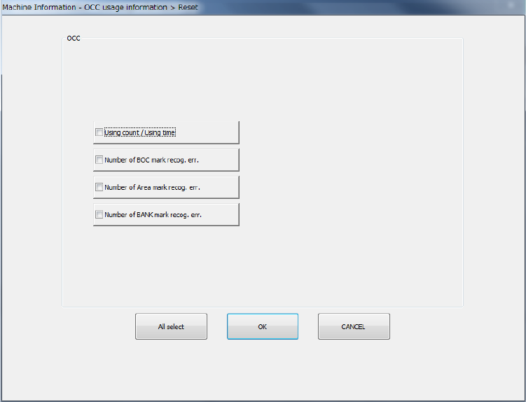 When you select [Recognition/inspection] – [OCC usage information] in the main menu, the OCC