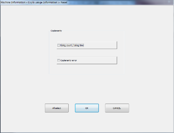 Pa r t 2 Det ai l ed Des c r i pti on o f Ea c h Fu nc ti on Chapter 10 M ach i ne Manage m e nt Infor m ation 10 - 45 10. 5 S etti ngs 10.5.1 Set up – Ope rat io n Inform at io n o f e a ch no zzle Ref er to “ 10.3. 4 O…