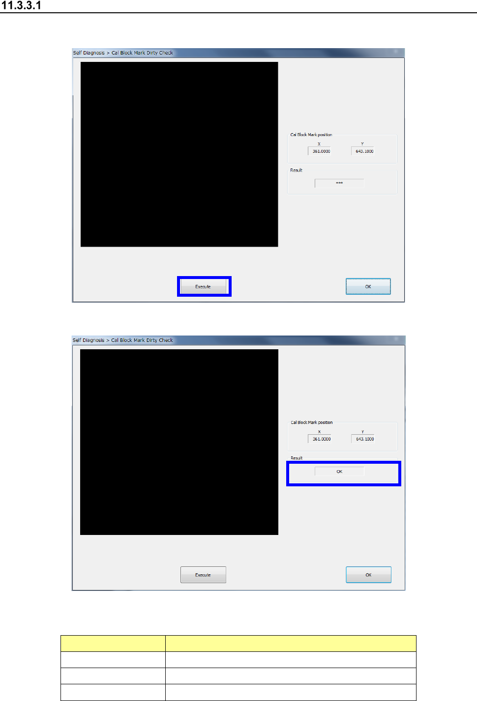 check dialog appears. Press the <Exec> button to execute a CAL block mark stain check.