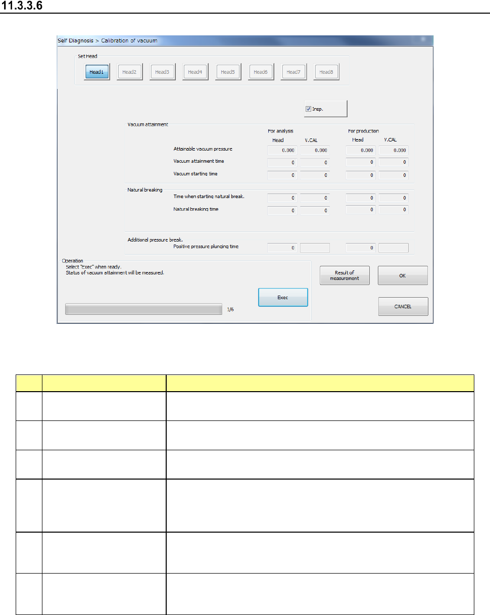 When you select [Vacuum] in the self-diagnosis menu, the vacuum calibration dialog appears.