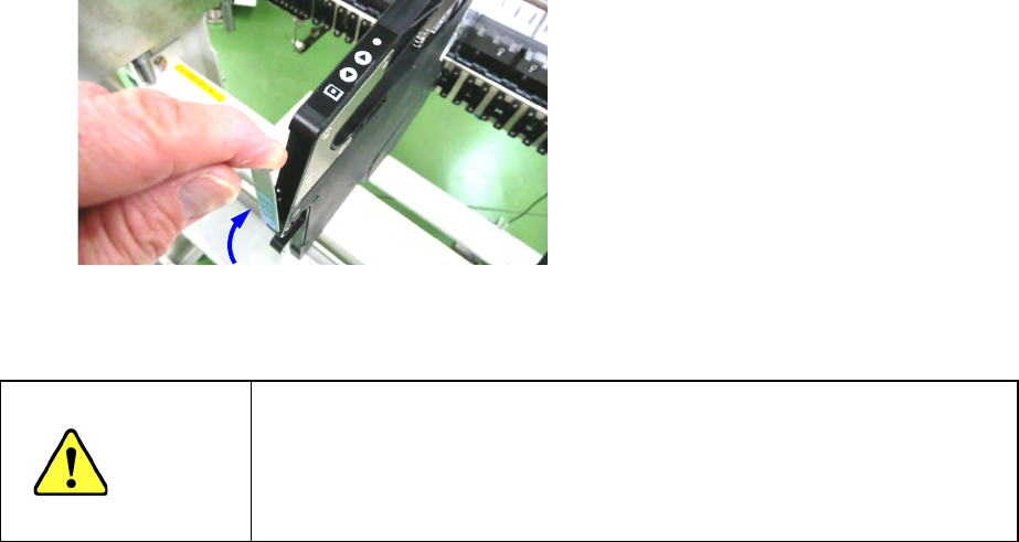 work base while supporting the lower side of the tape feeder with your opposite hand.