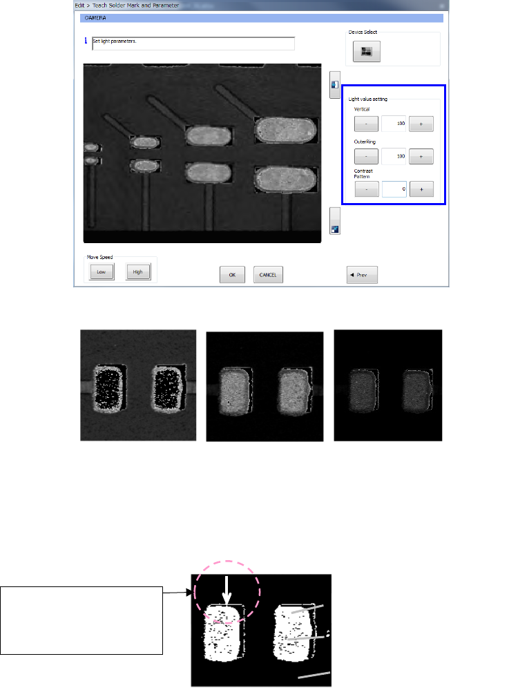 <CANCEL> button on the “Set Solder Recognition Parameter” screen, and adjust the lights