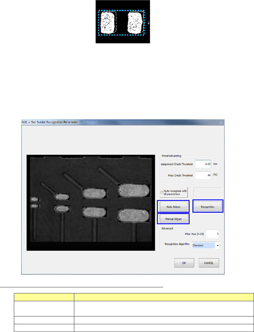 When you select the <Auto Adjust> button on the “Set Solder Recognition Parameter” screen,