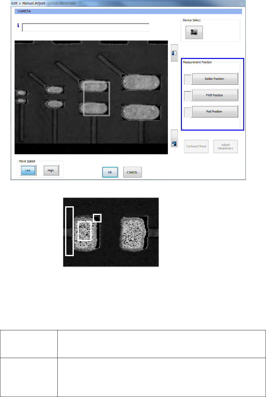From the [Solder Recognition Parameter Setting] screen select [Manual Adjustment] to