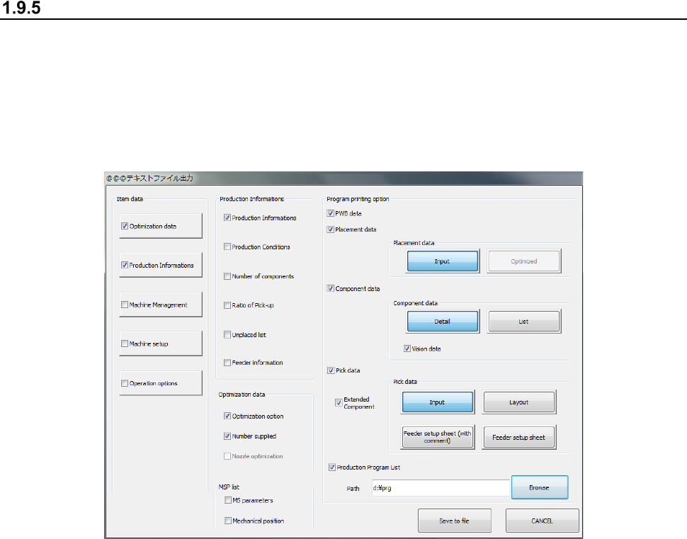② When the text file output dialog box appears on the screen, check the items to be output to a