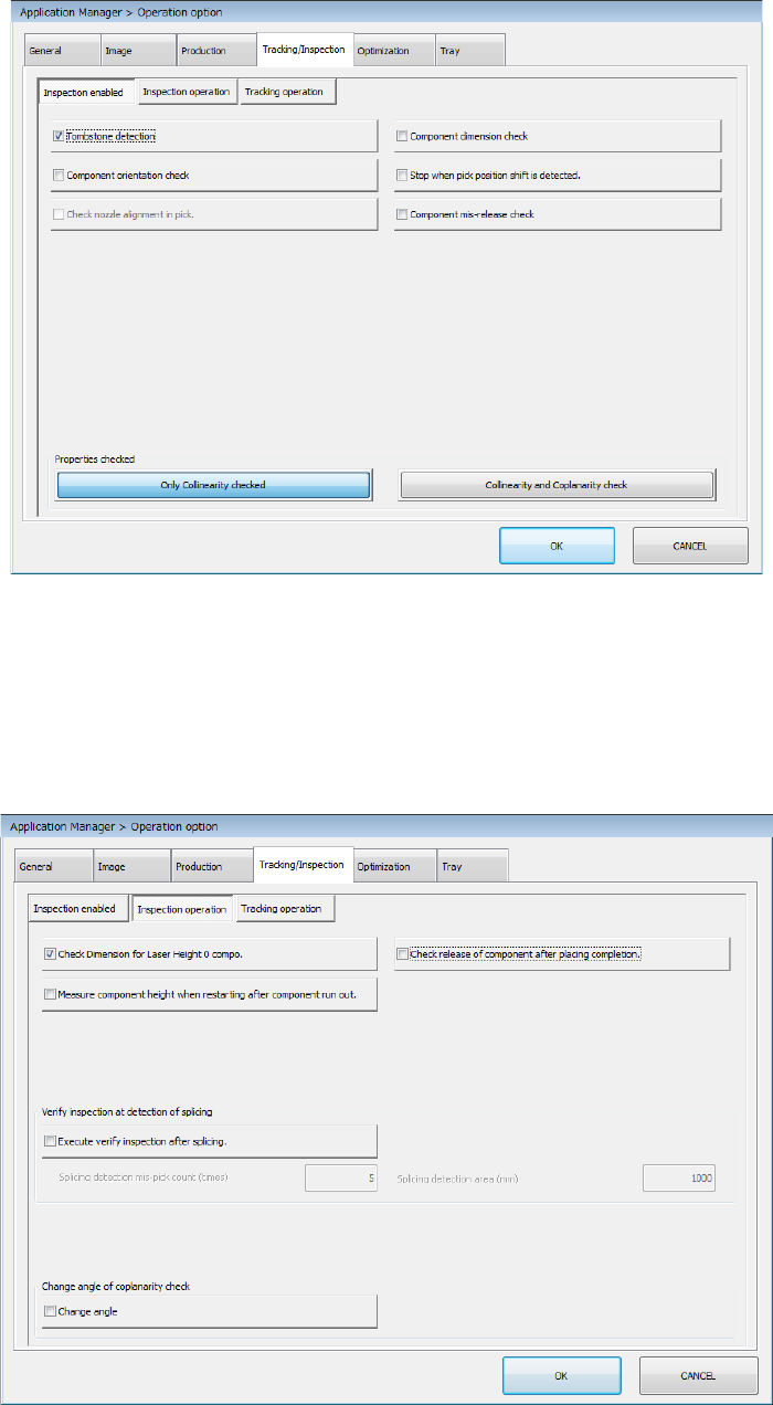 the “Operation option” screen. Next, select the “Tracking/Inspection” tab, and then the “Inspection