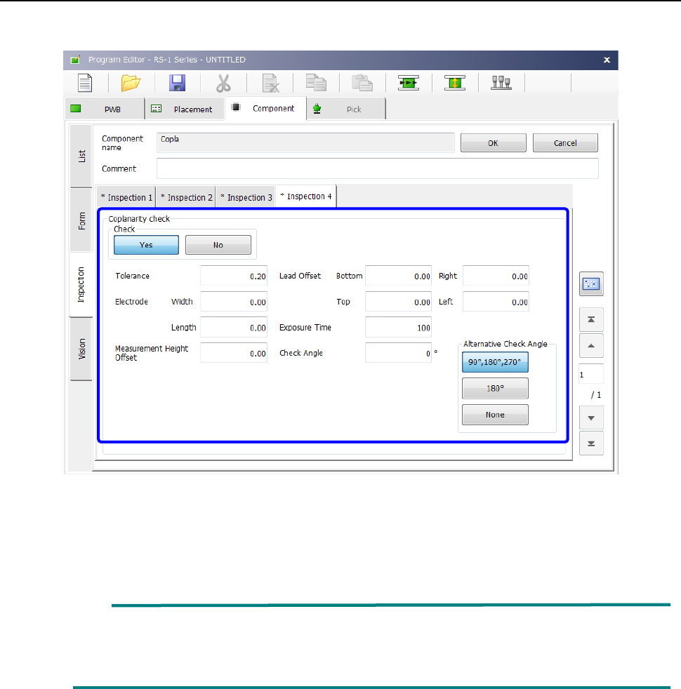 Start up the Program Editor, and then select the “Inspection 4” tab on the “Component” data screen.