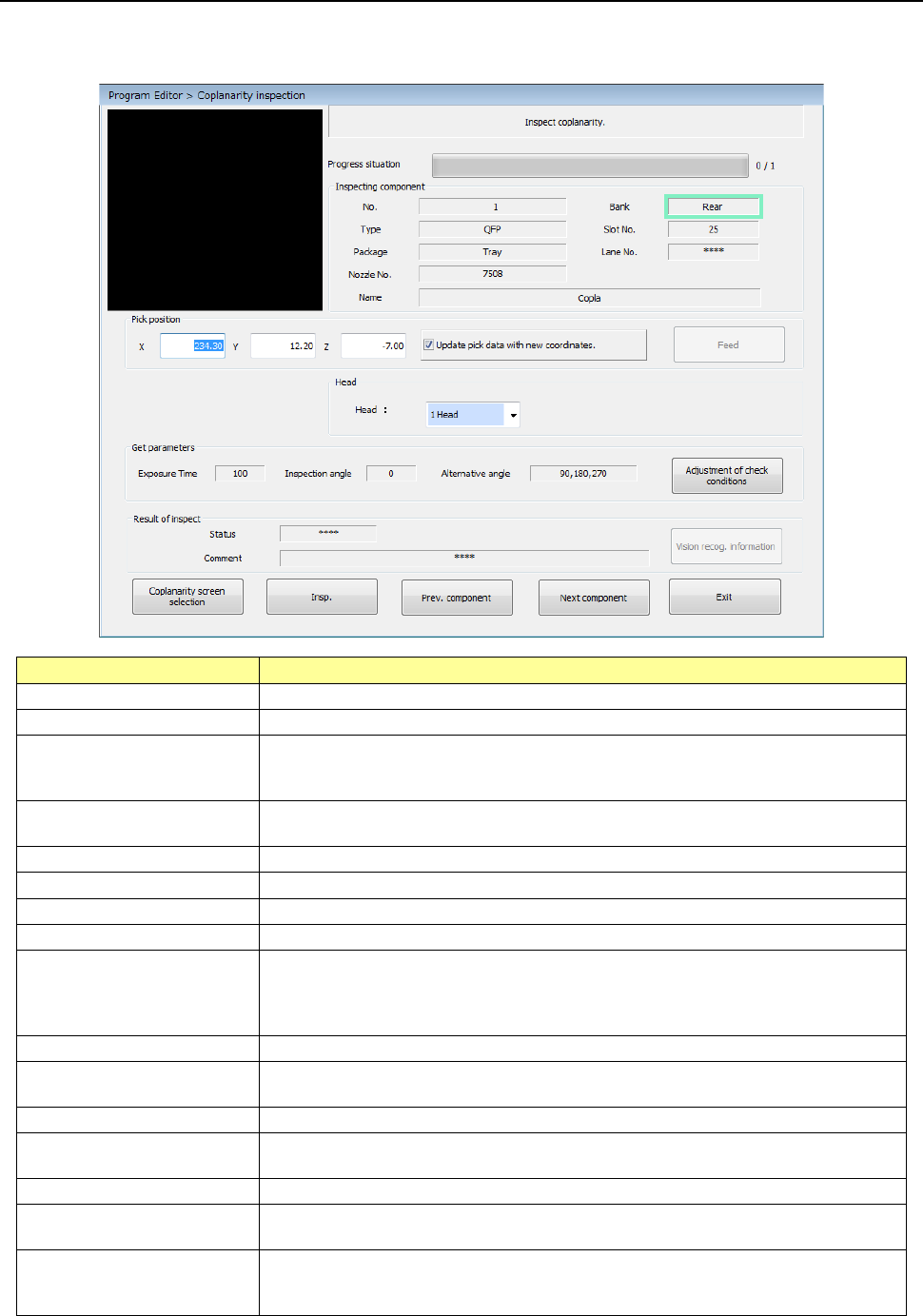 Displays the exposure time of the camera built into the coplanarity sensor.