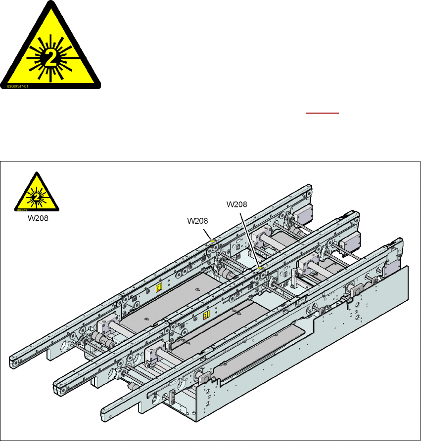 Fig. 2.2 - 10 Signal de danger W208 "Catégorie de laser 2" sur le convoyeur de CI