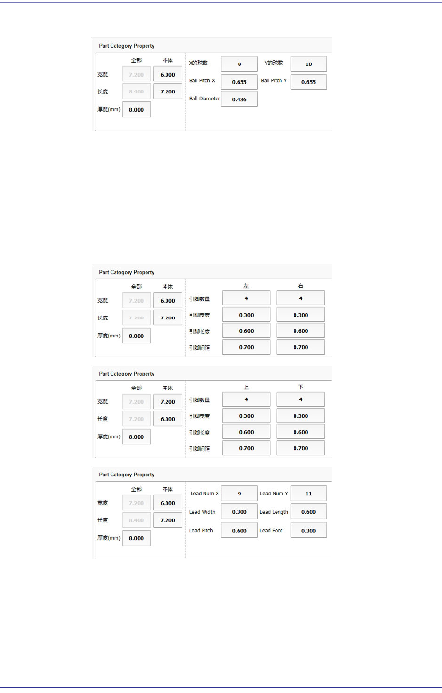 7-16 Multi-Functional Placer SM482(L) PLUS Administrator’s Guide Ball 元件 主体 (B o dy) 宽度 / 长度 : 元件 的 X/Y 方向尺寸 厚度 : 元件的厚度 X/Y 的球数 : X/ Y 方向的球数量 球间距 X/ Y : 从 球中心到相邻球的中心为止的 X/Y 距离 球直径 : 球的直径 Leaded 元件 < 全部…