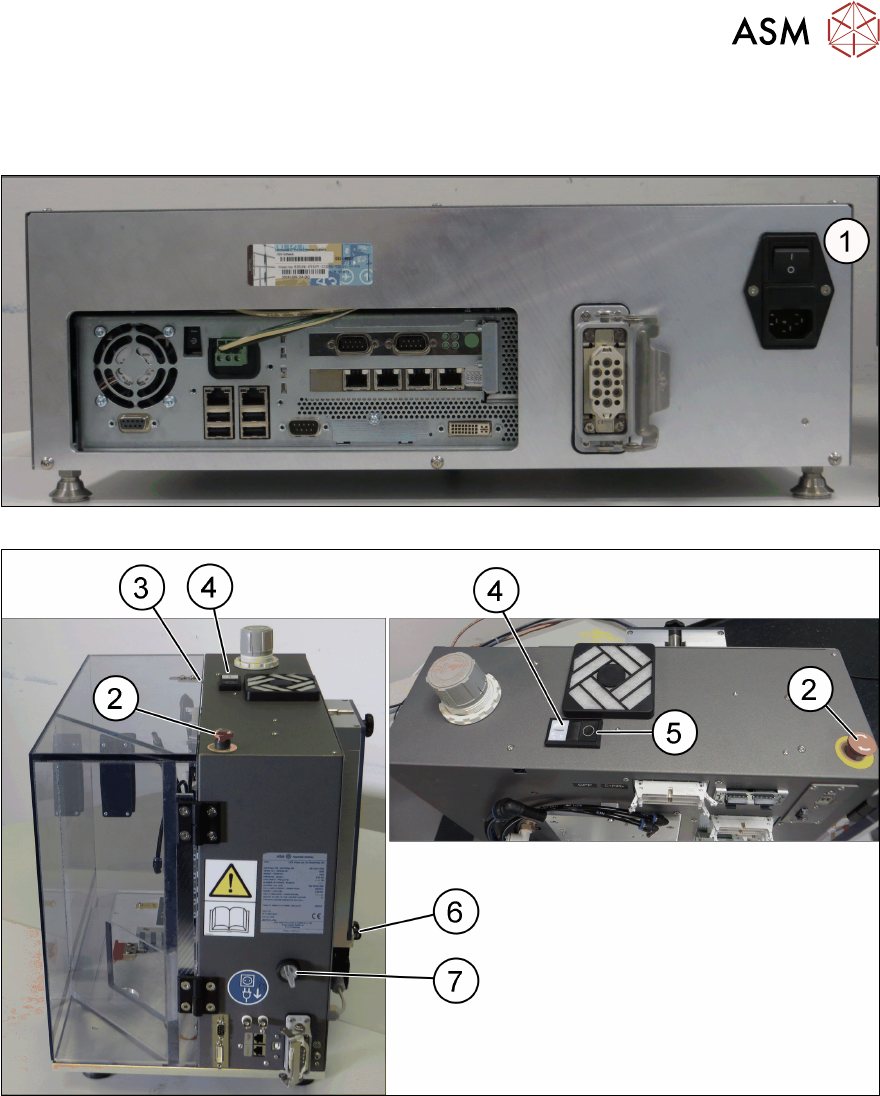 1 Main power switch on control box 2 EMERGENCY OFF button