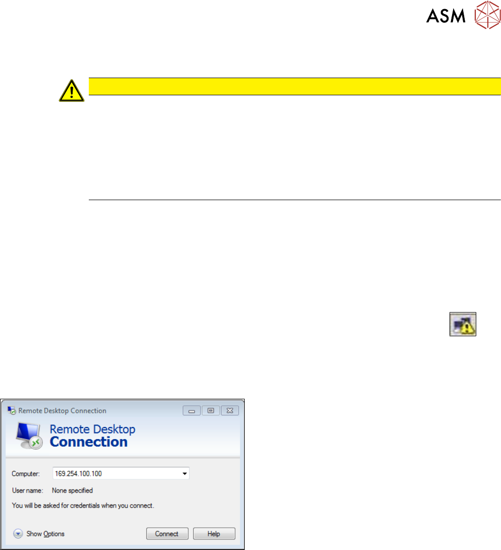 using the Windows XP remote desktop function. To establish a remote desktop connection to the