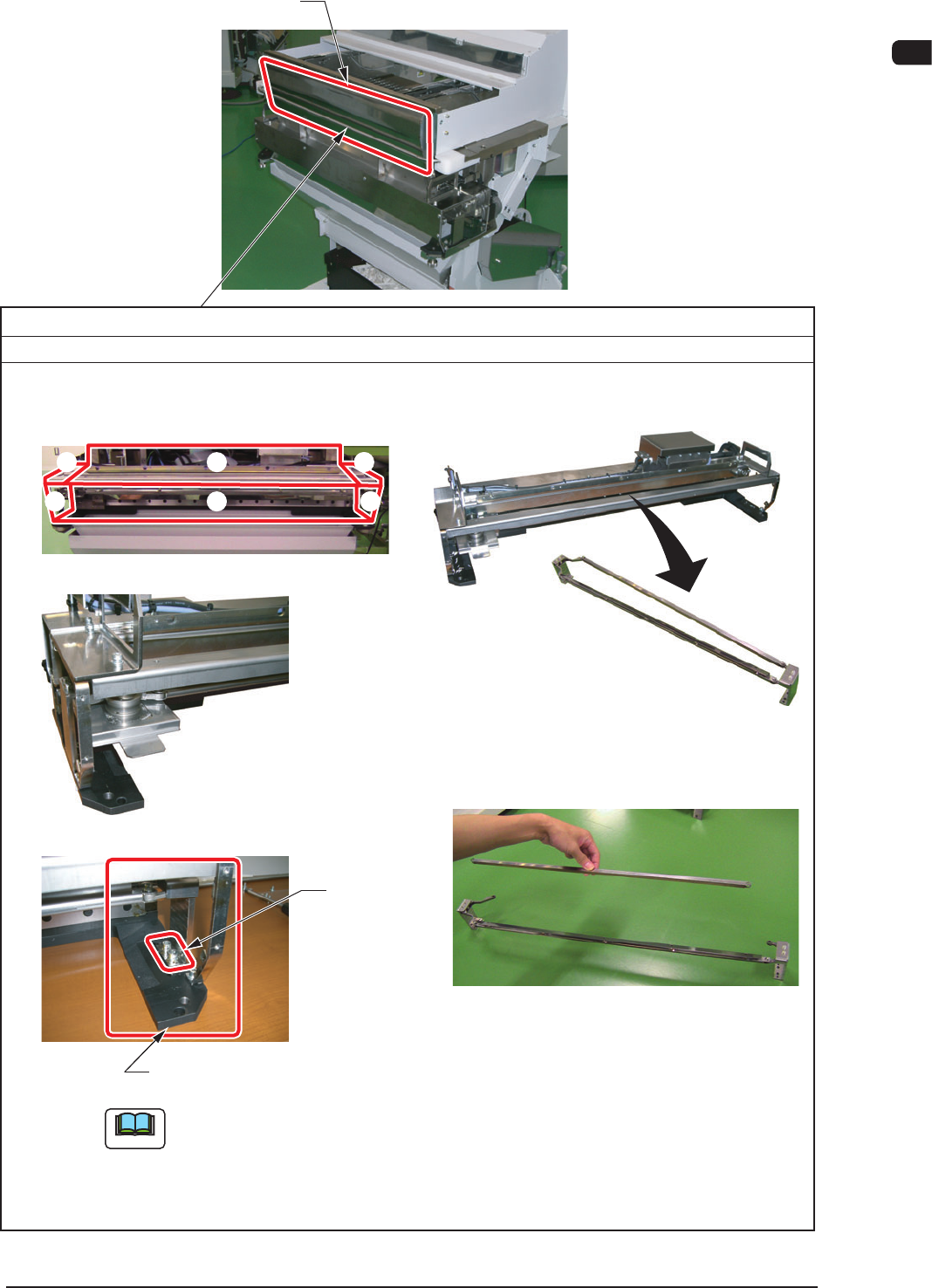 4OM-1603 1-31 3. Maintenance Spots : Chap.1 Note (3) Attach the cutter blade cover. (1) Remove the front safety bar and take out the cutter from the cart. ② ⑥ ① ④ ⑤ ③ ③ ② ⑥ ⑤ Front Safety Bar Urethane Clamp (2) Remove th…