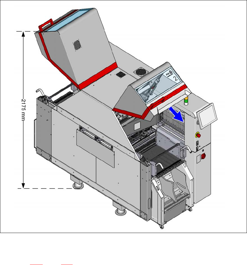 Abb. 3.3 - 2 Höhe der aufgeklappten Schutzhaube - Abmessungen in Millimeter (Beispiel SIPLACE TX2)