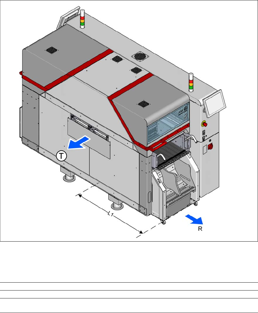 3 Technische Daten und Baugruppen Be triebsanleitung SIPLACE TX 3.3 Abmessungen und Gewicht Ab Softwareversion 714.0 12/2020 114 3.3.2 Rangierabst and der BE-Wagen 3 Abb. 3.3 - 3 Rangierabstand der BE-Wagen am Bestückaut…