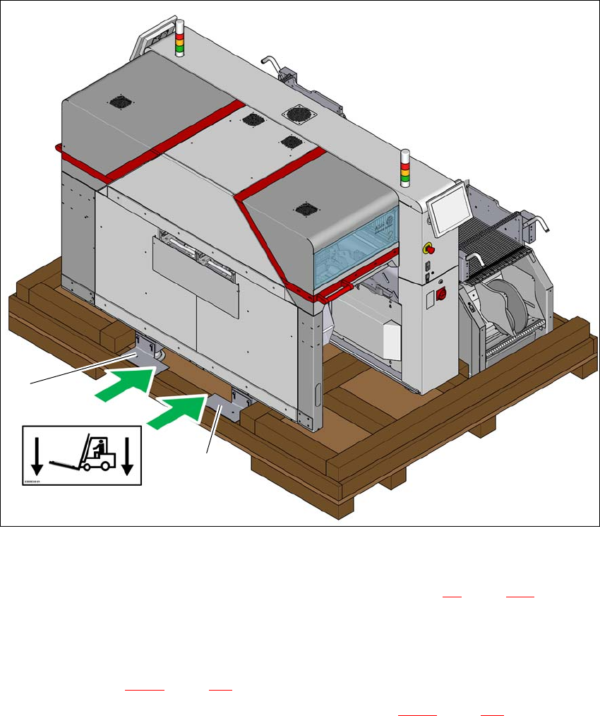 Betriebsanleitung SIPLACE TX 4 Aufstellen und Inbetriebnahme Ab Softwareversion 714.0 12/2020 4.2 Anlieferungskonfiguration 181 4 Abb. 4.2 - 4 Auflageflächen - Gabel parallel zu r Leiterplatten-T ransportr ic htung an de…