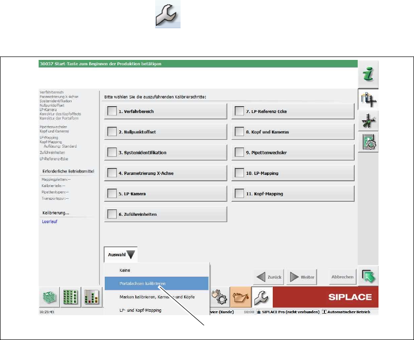 Wählen Sie unter Auswahl => Portalachsen kalibrieren (1).