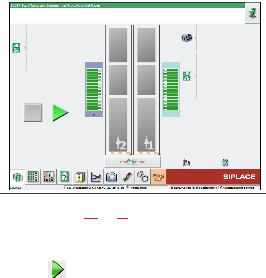 Betriebsanleitung SIPLACE TX 5 Aufgaben am Bestückautomaten Ab Softwareversion 714.0 12/2020 5. 3 SIPLACE-Linie einschalten 227 5.3 SIPLACE-Linie einschalten 5.3.1 St arten des Programms SIP LACE Pro Line Control GUI S…